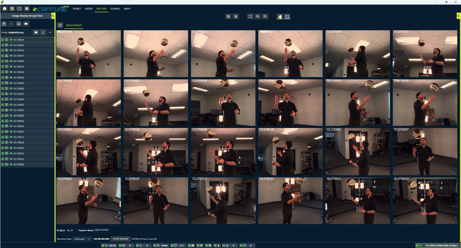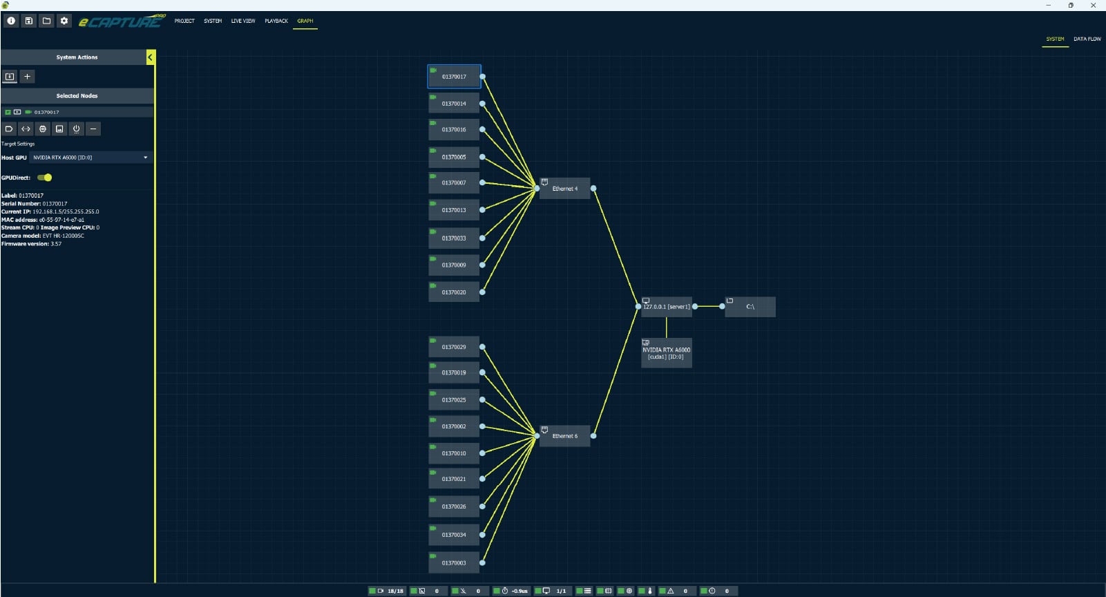 eCapture Pro Vision Software controls 10, 25 and 100GigE cameras through a simple interface. Capture raw video, control every camera, and scale from 1 to 500+ camera systems with GPU Direct processing.